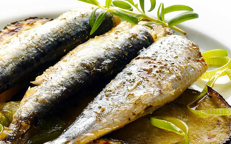 SARDINAS SOBRE PARRILLADA DE VERDURAS